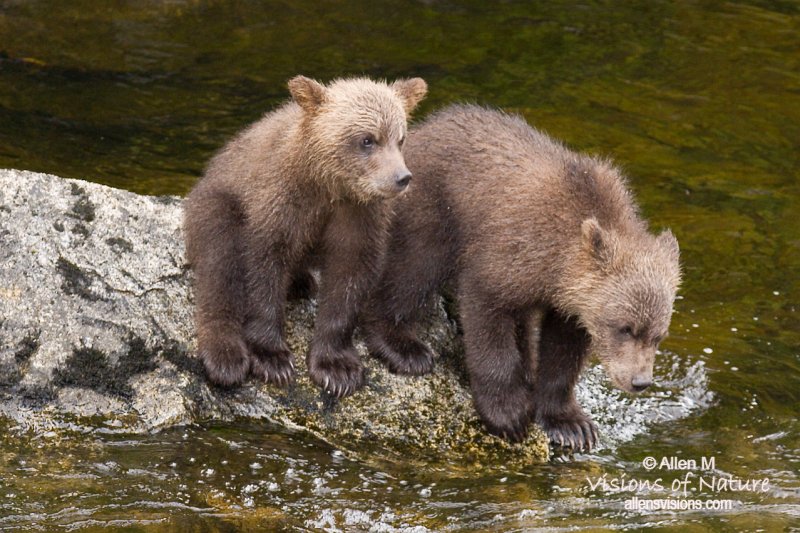 | "Awaiting Mom" Tongass National Forest Alaska These bear cubs patiently await their mother and are uneasy about going into the water. |